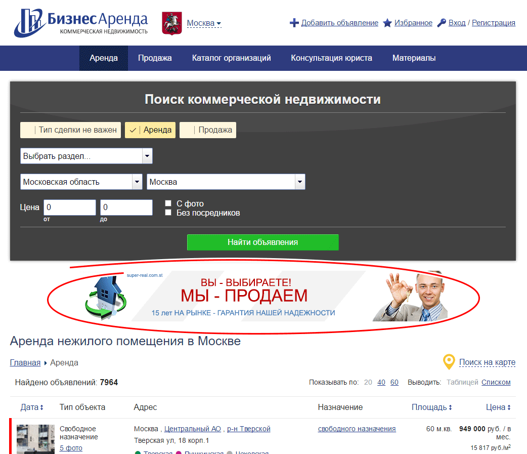 Реклама на сайте БизнесАренда